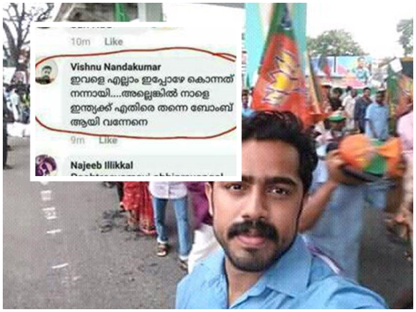 കശ്മീരില് ക്ഷേത്രത്തിനുള്ളില് ക്രൂര ബലാത്സംഗത്തിനിരയാക്കി കൊലപ്പെടുത്തിയ എട്ടു വയസുകാരി ആസിഫയുടെ വിയോഗത്തെ തുടർന്ന് ഇയാള് ഫേസ്ബുക്കില് പോസ്റ്റ് ചെയ്തത് ഇങ്ങനെയാണ്. "ഇവളെ എല്ലാം ഇപ്പോഴേ കൊന്നത് നന്നായി. അല്ലെങ്കില് നാളെ ഇന്ത്യയക്ക് എതിരെ തന്നെ ബോംബ് ആയി വന്നേനെ".
