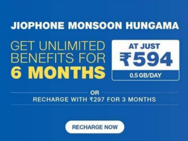 ആറുമാസത്തോളം കാലവധിയുള്ള പ്ലാനാണ് 594 രൂപയ്ക്ക് നല്കുന്നത്. തീര്ച്ചയായും വോയ്സ് കോളിങ് അണ്ലിമിറ്റഡാണ്. 28 ദിവസത്തിന് 300 എസ്എംഎസുകളും എല്ലാ ജിയോ ആപ്പുകളും സൗജന്യമായിരിക്കും. അണ്ലിമിറ്റഡ് ഇന്റര്നെറ്റ് ആണ് ഓഫര് ചെയ്യുന്നതെങ്കിലും 500എംബി പ്രതിദിന ക്വാട്ട കഴിഞ്ഞാല് സ്്പീഡ് 64kbpsലേക്ക് താഴും. കൃത്യം 168 ദിവസമാണ് പ്ലാനിന്റെ വാലിഡിറ്റി.