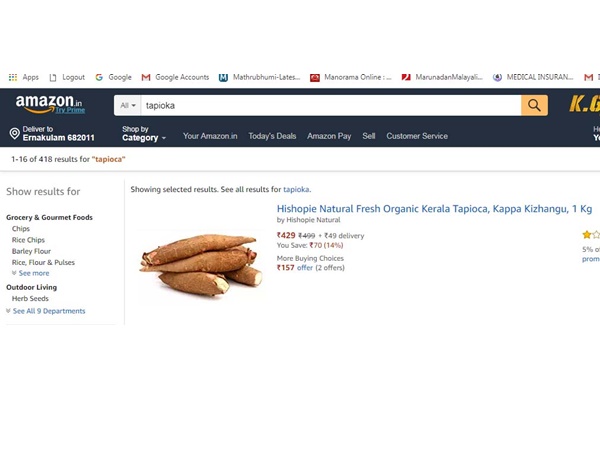 ഇപ്പോള് നമ്മുടെ നാട്ടിലെ ചിരട്ടയ്ക്കും കപ്പയ്ക്കും ചക്കയ്ക്കുമൊക്കെ ആമസോണില് നല്ല വിലയാണ്. ഒരു കിലോ കപ്പക്കിഴങ്ങിന് ഓണ്ലൈന് മാര്ക്കറ്റില് 429 രൂപയാണ് വിലയിട്ടിരിക്കുന്നത്. ഭാഗ്യത്തിന് 70 രൂപ വിലക്കുറവുണ്ട്. ഹൈഷോപ്പി നാച്വറല് എന്ന സ്ഥാപനമാണ് ഇത് ഓണ്ലൈന് വിപണിയില് എത്തിച്ചിരിക്കുന്നത്. നാച്വറല് ഫ്രഷ് ഓര്ഗാനിക് കേരള ടാപിയോക അഥവാ കപ്പക്കിഴങ്ങ് എന്ന പേരില്. പക്ഷെ ഡിസ്കൗണ്ടും കഴിച്ച് 359 രൂപയ്ക്ക് ഒരു കിലോ കപ്പ കിട്ടുമെന്ന് കരുതിയാല് തെറ്റി. ഡെലിവറി ചാര്ജ്ജ് 49 രൂപ കൂടി നല്കിയാലേ കപ്പ നിങ്ങളുടെ വീട്ടുപടിക്കലിലെത്തൂ. അതായത് ഒരു കിലോ കപ്പയ്ക്ക് 408 രൂപ കൊടുക്കണം. ആമസോണ് നല്കുന്ന വിലക്കിഴിവായ 70 രൂപയ്ക്ക് രണ്ടരക്കിലോ കപ്പ കടയില് വാങ്ങാന് കിട്ടുമെന്നിരിക്കെയാണ് ആമസോണ് ഇത്ര ഉയര്ന്ന തുകയ്ക്ക് വില്പ്പന നടത്തുന്നത്.