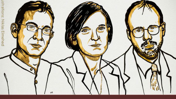 2019ലെ സാമ്പത്തിക നൊബേല് പുരസ്കാരം ഇന്ത്യന് വംശജന് അഭിജിത് ബാനര്ജി അടക്കം മൂന്ന് പേര്ക്ക്. എസ്തര് ദുഫ്ലോ, മൈക്കല് ക്രെമര് എന്നിവരാണ് മറ്റ് രണ്ട് പേര്. ആഗോള ദാരിദ്ര്യം ലഘൂകരിക്കുന്നതിനുള്ള പരീക്ഷണാത്മക സമീപനങ്ങളാണ് ഇവരെ നൊബേൽ സമ്മാനത്തിന് അർഹരാക്കിയത്.