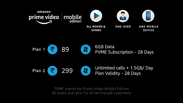 ഇന്ത്യയെപോലെ മൊബൈൽ ആശ്രിത രാജ്യങ്ങൾക്ക് വേണ്ടിയാണ് പുതിയ പ്ലാൻ രൂപപ്പെടുത്തിയിരിക്കുന്നത്. ആമസോൺ പ്രീമിയറിൻറെ ഇന്ത്യയിലെ പ്രൈം വീഡിയോ മൊബൈൽ എഡിഷന് വേണ്ടി കമ്മ്യൂണിക്കേഷൻ സൊലൂഷൻ സേവനദാതാക്കളായി ഭാരതി എയർടെല്ലിനെയും നിശ്ചയിച്ചിരിക്കുന്നു. .