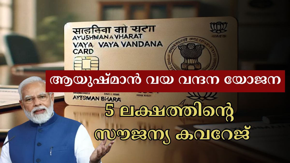 70 വയസ്സും അതിൽ കൂടുതലും പ്രായമുള്ള മുതിർന്ന പൗരനാണോ നിങ്ങൾ? എങ്കിൽ ഈ സന്തോഷ വാർത്ത നിങ്ങൾക്കുള്ളതാണ്... സർക്കാറിന്റെ ഏറ്റവും വലിയ പദ്ധതിയായ ആയുഷ്മാൻ ഭാരതിൻ്റെ കീഴിൽ അവതരിപ്പിക്കുന്നതാണ് 'ആയുഷ്മാൻ വയ വന്ദന യോജന'. 2024 ഒക്ടോബർ 29 ന് ആരംഭിച്ച ഈ പദ്ധതി പ്രകാരം, ഓരോ മുതിർന്ന പൗരനും 5 ലക്ഷം രൂപ വരെ സൗജന്യ പണരഹിത ചികിത്സ ലഭിക്കുന്നു. പ്രീമിയം നൽകാതെ പൂർണമായും സൗജന്യമായി ഉറപ്പാക്കാവുന്ന പദ്ധതിയാണ് ഇത്.