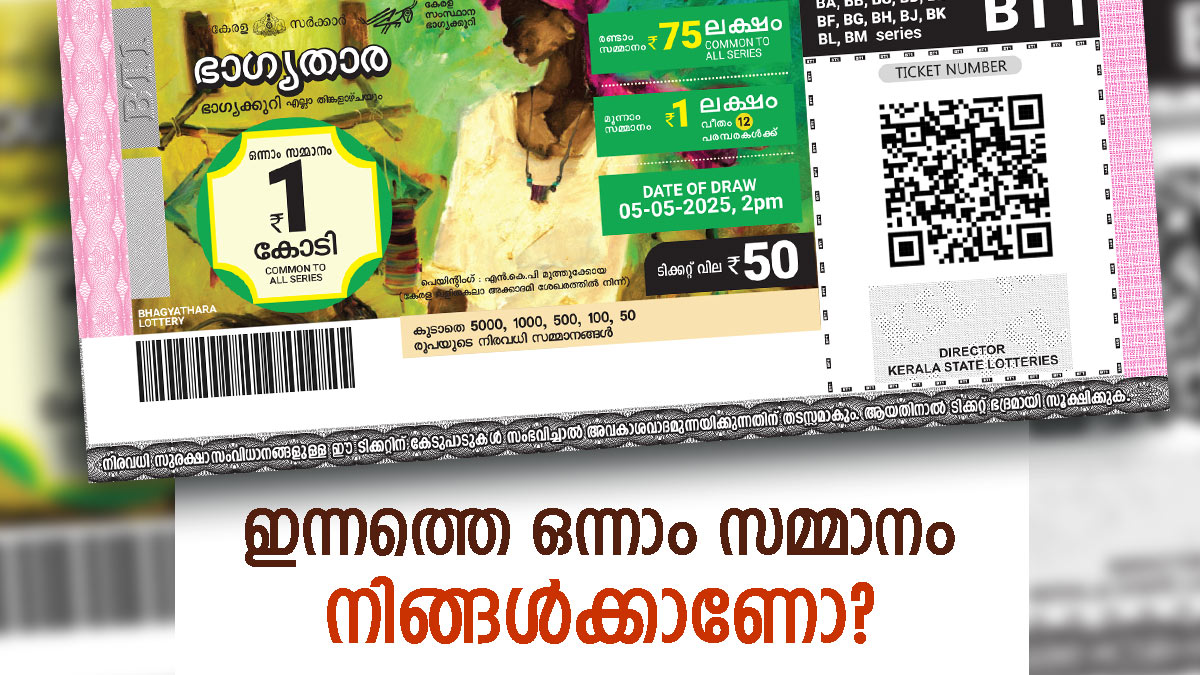 BN, BO, BP, BR, BS, BT, BU, BV, BW, BX, BY, BZ എന്നീ സീരീസുകളിലാണ് ഭാഗ്യതാര ലോട്ടറി വിപണിയിലെത്തിയത്. 50 രൂപാ ടിക്കറ്റ് വിലയുള്ള ഭാഗ്യതാര ഭാഗ്യക്കുറിയുടെ ഇന്നത്തെ ഭാഗ്യശാലി നിങ്ങളാണോ.... ഇന്നത്തെ നറുക്കെടുപ്പ് ഫലം ഇതാ....