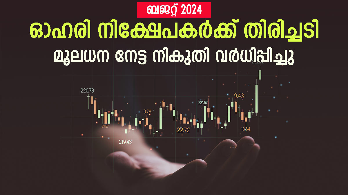 ധനമന്ത്രി നിർമ്മല സീതാരാമൻ അവതരിപ്പിച്ച കേന്ദ്ര ബജറ്റിൽ ഓഹരി നിക്ഷേപകർക്ക് തിരിച്ചടിയുണ്ടാക്കുന്ന പ്രഖ്യാപനങ്ങളുമുണ്ട്. അതിൽ ഏറ്റവും പ്രധാനപ്പെട്ടത് ദീര്ഘകാല മൂലധന നേട്ട നികുതി 10 ശതമാനത്തില്നിന്ന് 12.5 ശതമാനമായി ഉയര്ത്തിയതാണ്. അതോടൊപ്പം ഹ്രസ്വകാല മൂലധന നേട്ടനികുതിയാകട്ടെ 15 ശതമാനത്തില്നിന്ന് 20 ശതമാനമാക്കുകയും ചെയ്തു. മറ്റ് ആസ്തികളുടേതാകട്ടെ മൊത്തവരുമാനത്തോട് ചേര്ത്തുള്ള വരുമാനത്തിന് ബാധകമായ സ്ലാബ് അനുസരിച്ച് നികുതി നല്കേണ്ടിയുവരും.