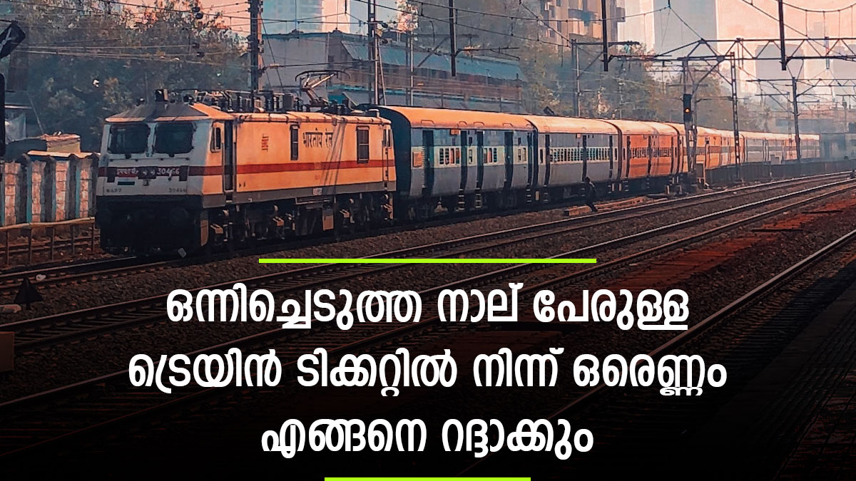 നാലോ അഞ്ചോ പേര്ക്ക് ഒന്നിച്ച് ടിക്കറ്റ് ബുക്ക് ചെയ്താല് അതില് നിന്നും ഒരാള് യാത്ര ഉപേക്ഷിച്ചാല് ഒരാളുടെ ടിക്കറ്റ് മാത്രം റദ്ദാക്കാന് സാധിക്കുമോ എന്നാണ് ചോദ്യം. ഒരു പിഎൻആർ നമ്പറിലുള്ള ഒന്നിലധികം പേരുടെ ടിക്കറ്റിൽ നിന്ന് ഒരാളുടെ ടിക്കറ്റ് റദ്ദാക്കാൻ സാധിക്കും.