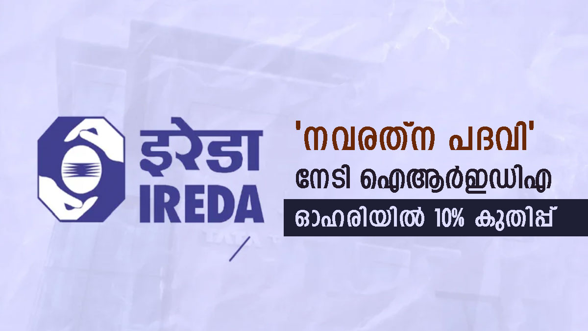 'നവരത്ന പദവി' ലഭിച്ചതിന് പിന്നാലെ 10 ശതമാനത്തിലധികം മുന്നേറ്റമാണ് ഇന്ത്യൻ റിന്യൂവബിൾ എനർജി ഡെവലപ്മെൻ്റ് ഏജൻസിയുടെ (ഐആർഇഡിഎ) ഓഹരി കാഴ്ചവെച്ചത്. ബിഎസ്ഇയിൽ ഐആർഇഡിഎ ഓഹരി വില ഒന്നിന് 186.20 രൂപയിൽ ആരംഭിച്ചു , ഈ സ്റ്റോക്ക് ഇൻട്രാഡേ ഹൈ 191.50 ലും ഇൻട്രേയ്ഡ് ഏറ്റവും താഴ്ന്ന നിരക്കായ 182.05 രൂപയിലും എത്തി.