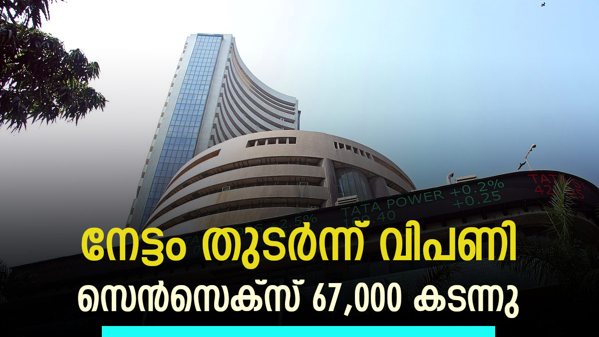 തുടർച്ചയായ അഞ്ചാം സെഷനിലും നേട്ടം തുടർന്ന സെൻസെക്സും നിഫ്റ്റിയും പുതിയ ക്ലോസിംഗ് നിലവാരത്തിൽ വ്യാപാരം അവസാനിപ്പിച്ചു. സെൻസെക്സ് ആദ്യമായി 67,000 ന് മുകളിൽ എത്തിയ ചൊവ്വാഴ്ച ഇൻട്രാഡേ ട്രേഡിൽ 67,007.02 എന്ന പുതിയ റെക്കോർഡ് നിലവാരത്തിലെത്തി.