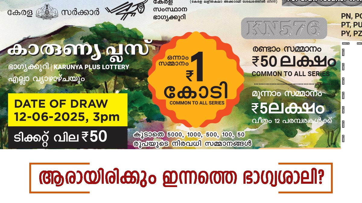ഇന്നത്തെ കാരുണ്യ പ്ലസ് ലോട്ടറിയുടെ നറുക്കെടുപ്പ് ഫലം പ്രഖ്യാപിച്ചു. തിരുവനന്തപുരം ബേക്കറി ജംങ്ഷന് സമീപമുള്ള ഗോർക്കി ഭവനിൽ വെച്ചാണ് ഇന്നത്തെ കാരുണ്യ പ്ലസ് KN-585 ഭാഗ്യക്കുറിയുടെ നറുക്കെടുപ്പ് നടന്നത്. 1 കോടിയുടെ ഭാഗ്യം നിങ്ങൾക്കാണോ? 50 രൂപാ ടിക്കറ്റ് വിലയുള്ള കാരുണ്യ പ്ലസ് ലോട്ടറിയുടെ ഒന്നാം സമ്മാനം 1 കോടി രൂപയും, രണ്ടാം സമ്മാനം 30 ലക്ഷം രൂപയും മൂന്നാം സമ്മാനം 5 ലക്ഷം രൂപയുമാണ്. 5,000 രൂപയാണ് സമാശ്വാസ സമ്മാനം. ഇന്നത്തെ ഭാഗ്യനമ്പറുകൾ അറിയാം, നറുക്കെടുപ്പ് ഫലം ഇതാ-