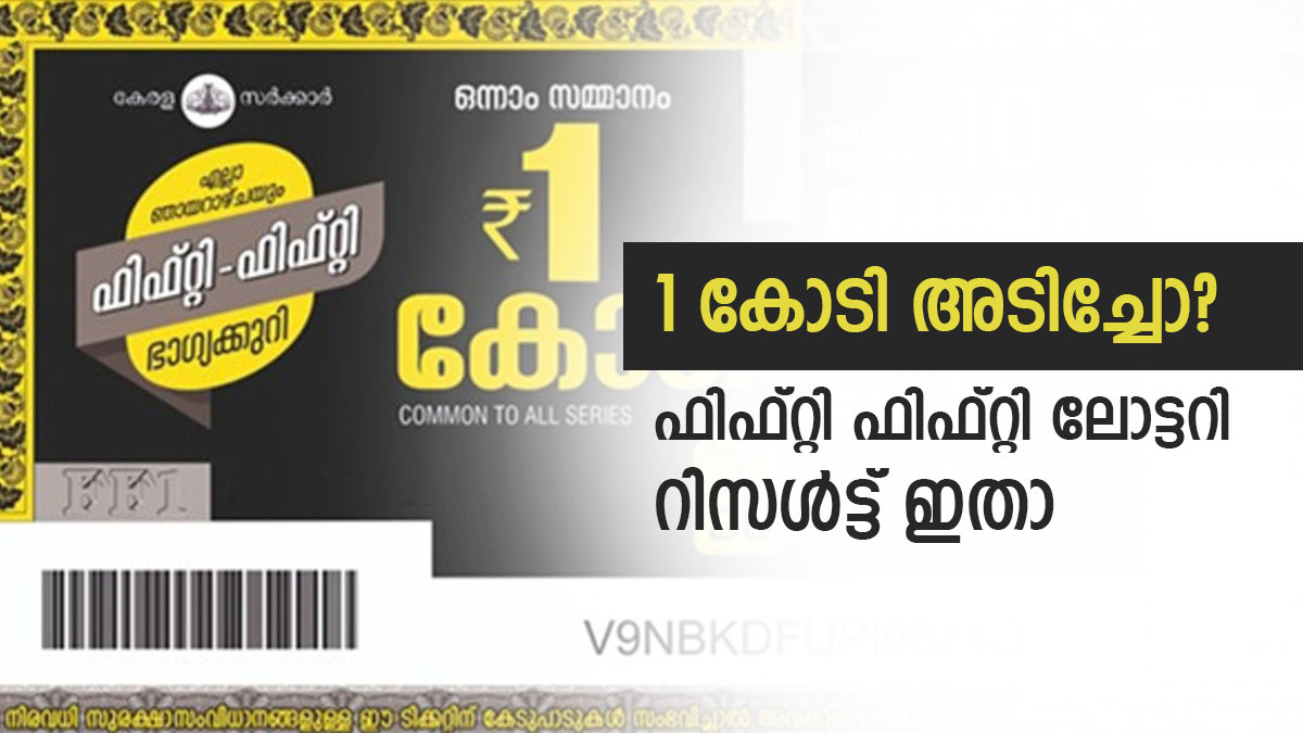 കേരള സംസ്ഥാന ഭാഗ്യക്കുറി ഫിഫ്റ്റി ഫിഫ്റ്റി-FF 120 ഭാഗ്യക്കുറി ഫലം പ്രഖ്യാപിച്ചു. തിരുവനന്തപുരം ബേക്കറി ജംങ്ഷന് സമീപമുള്ള ഗോർക്കി ഭവനിൽ വെച്ചാണ് ഇന്നത്തെ ഫലം പ്രഖ്യാപിച്ചത്. ബുധനാഴ്ചകളിൽ നറുക്കെടുപ്പ് നടത്തുന്ന ഫിഫ്റ്റി ഫിഫ്റ്റി ഭാഗ്യക്കുറിയുടെ വില 50 രൂപയാണ്. ഒന്നാം സമ്മാനം 1 കോടി രൂപയാണ് നൽകുന്നത്. രണ്ടാം സമ്മാനം 10 ലക്ഷം രൂപയും, മൂന്നാം സമ്മാനം 5000 രൂപയും നൽകുന്നു. ഈ നമ്പറുള്ള ടിക്കറ്റുകളാണ് നറുക്കെടുപ്പിലൂടെ തിരഞ്ഞെടുത്തത്. ഇന്നത്തെ ഫലം പരിശോധിക്കാം.