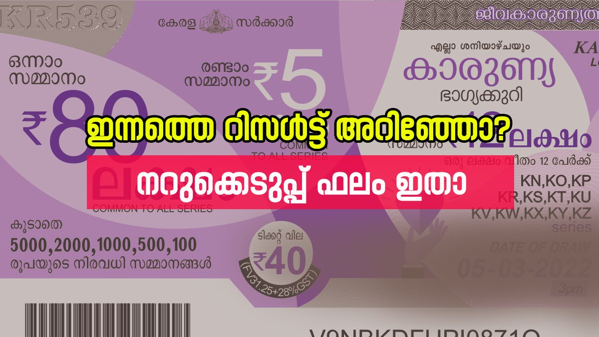 40 രൂപയാണ് ഒരു ടിക്കറ്റിന്റെ വില. ഇന്നത്തെ നറുക്കെടുപ്പിൽ ഒന്നാം സമ്മാനം കോഴിക്കോട് സ്വദേശിക്ക് അടിച്ചു. രണ്ടാം സമ്മാനം എറണാകുളത്ത്. സമ്മാനാർഹമായ നമ്പറുകൾ അറിയാം, ഈ നറുക്കെടുപ്പ് ഫലം നോക്കൂ....