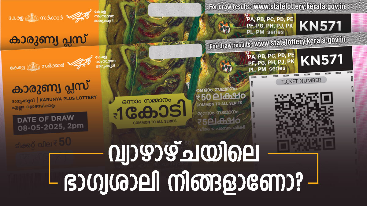 വ്യാഴാഴ്ചകളിൽ നറുക്കെടുക്കുന്ന കേരള സംസ്ഥാന ഭാഗ്യക്കുറിയാണ് കാരുണ്യ പ്ലസ് ലോട്ടറി. ഇന്നത്തെ കാരുണ്യ പ്ലസ് KN-573 ലോട്ടറിയുടെ നറുക്കെടുപ്പ് ഫലം തിരുവനന്തപുരം ബേക്കറി ജംങ്ഷന് സമീപമുള്ള ഗോർക്കി ഭവനിൽ വെച്ച് പ്രഖ്യാപിച്ചു. കാരുണ്യ പ്ലസ് ലോട്ടറിയുടെ ഒന്നാം സമ്മാനം 1 കോടി രൂപയാണ്. രണ്ടാം സമ്മാനം 50 ലക്ഷം രൂപയും മൂന്നാം സമ്മാനം 5 ലക്ഷം രൂപയുമാണ്. 50 രൂപാ ടിക്കറ്റ് വിലയുള്ള കാരുണ്യ പ്ലസ് ലോട്ടറിയുടെ ഇന്നത്തെ ഭാഗ്യശാലി നിങ്ങളാണോ? നറുക്കെടുപ്പ് ഫലം ഇതാ...