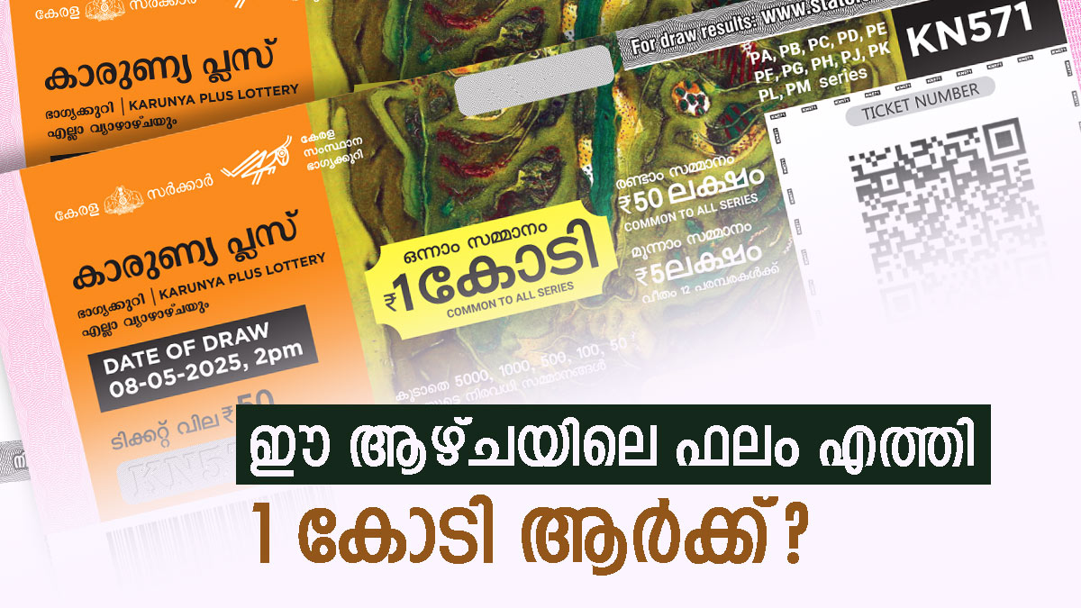 കാരുണ്യ പ്ലസ് ലോട്ടറിയുടെ നറുക്കെടുപ്പ് ഫലം എത്തി. ഇന്നത്തെ നറുക്കെടുപ്പ് ഫലം എത്തുമ്പോൾ നിങ്ങളായിരിക്കും ഒന്നാം സമ്മാനം സ്വന്തമാക്കുന്നത്. ഇന്നത്തെ കാരുണ്യ പ്ലസ് KN-576 ഭാഗ്യക്കുറിയുടെ നറുക്കെടുപ്പ് ഫലം തിരുവനന്തപുരം ബേക്കറി ജംങ്ഷന് സമീപമുള്ള ഗോർക്കി ഭവനിൽ വെച്ച് പ്രഖ്യാപിച്ചു. എല്ലാ വ്യാഴാഴ്ചയും നറുക്കെടുപ്പ് നടത്തുന്ന കാരുണ്യ പ്ലസ് ലോട്ടറിയുടെ ഒന്നാം സമ്മാനം 1 കോടി രൂപയും, രണ്ടാം സമ്മാനം 30 ലക്ഷം രൂപയും മൂന്നാം സമ്മാനം 5 ലക്ഷം രൂപയുമാണ്. 5,000 രൂപയാണ് സമാശ്വാസ സമ്മാനം. 50 രൂപാ ടിക്കറ്റ് വിലയുള്ള കാരുണ്യ പ്ലസ് ഭാഗ്യക്കുറിയുടെ നറുക്കെടുപ്പ് ഫലം ഇതാ....