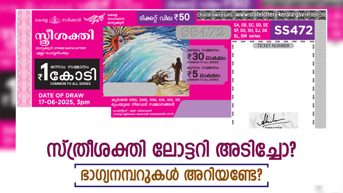 ചൊവ്വാഴ്ചകളിൽ ഭാഗ്യം കാത്തിരിക്കുന്നവരുണ്ടോ? ഇന്നത്തെ സ്ത്രീശക്തി ലോട്ടറിയുടെ നറുക്കെടുപ്പ് ഫലം എത്തിയിട്ടുണ്ട്. ഇന്ന് തിരുവനന്തപുരം ബേക്കറി ജംങ്ഷന് സമീപമുള്ള ഗോർക്കി ഭവനിൽ വെച്ചാണ് സ്ത്രീ ശക്തി SS 475 ലോട്ടറിയുടെ നറുക്കെടുപ്പ് നടന്നത്. 50 രൂപ ടിക്കറ്റ് വിലയുള്ള സ്ത്രീശക്തി ലോട്ടറിയുടെ ഒന്നാം സമ്മാനം 1 കോടി രൂപയും, രണ്ടാം സമ്മാനം 30 ലക്ഷം രൂപയും മൂന്നാം സമ്മാനം 5 ലക്ഷം രൂപയുമാണ്. ഭാഗ്യശാലികളെ, ഇന്നത്തെ നറുക്കെടുപ്പ് ഫലം എത്തി, റിസൾട്ട് അറിയാം.