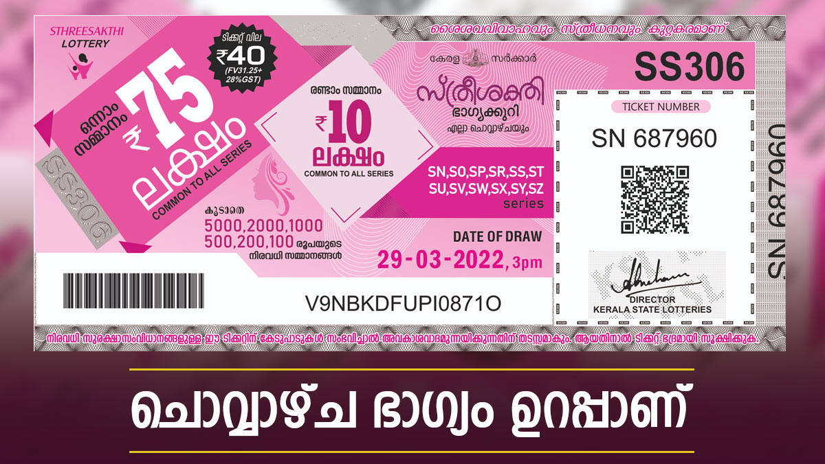 ചൊവ്വാഴ്ചകളിൽ നറുക്കെടുക്കുന്ന സ്ത്രീ ശക്തി ഭാഗ്യക്കുറിയുടെ 75 ലക്ഷം അടിച്ചത് നിങ്ങൾക്കാണോ? ടിക്കറ്റ് പോക്കറ്റിലുണ്ടെങ്കിൽ വേഗം തന്നെ റിസൾട്ട് നോക്കിക്കോളൂം. ഇന്നത്തെ സ്ത്രീ ശക്തി SS-458 ലോട്ടറിയുടെ നറുക്കെടുപ്പ് ഫലം പ്രഖ്യാപിച്ചു. തിരുവനന്തപുരം ബേക്കറി ജംങ്ഷന് സമീപമുള്ള ഗോർക്കി ഭവനിൽ വെച്ചാണ് ഈ ആഴ്ചയിലെ സ്ത്രീ ശക്തി ഭാഗ്യശാലികളെ കണ്ടെത്തിയത്. 40 രൂപ വിലയുള്ള സ്ത്രീ ശക്തിയുടെ ഒന്നാം സമ്മാനം 75 ലക്ഷം രൂപയാണ്. രണ്ടാം സമ്മാനം 10 ലക്ഷം രൂപയും മൂന്നാം സമ്മാനമായി ലഭിക്കുന്നത് 5000 രൂപയുമാണ്. ഭാഗ്യ നമ്പറുകൾ അറിയാം.