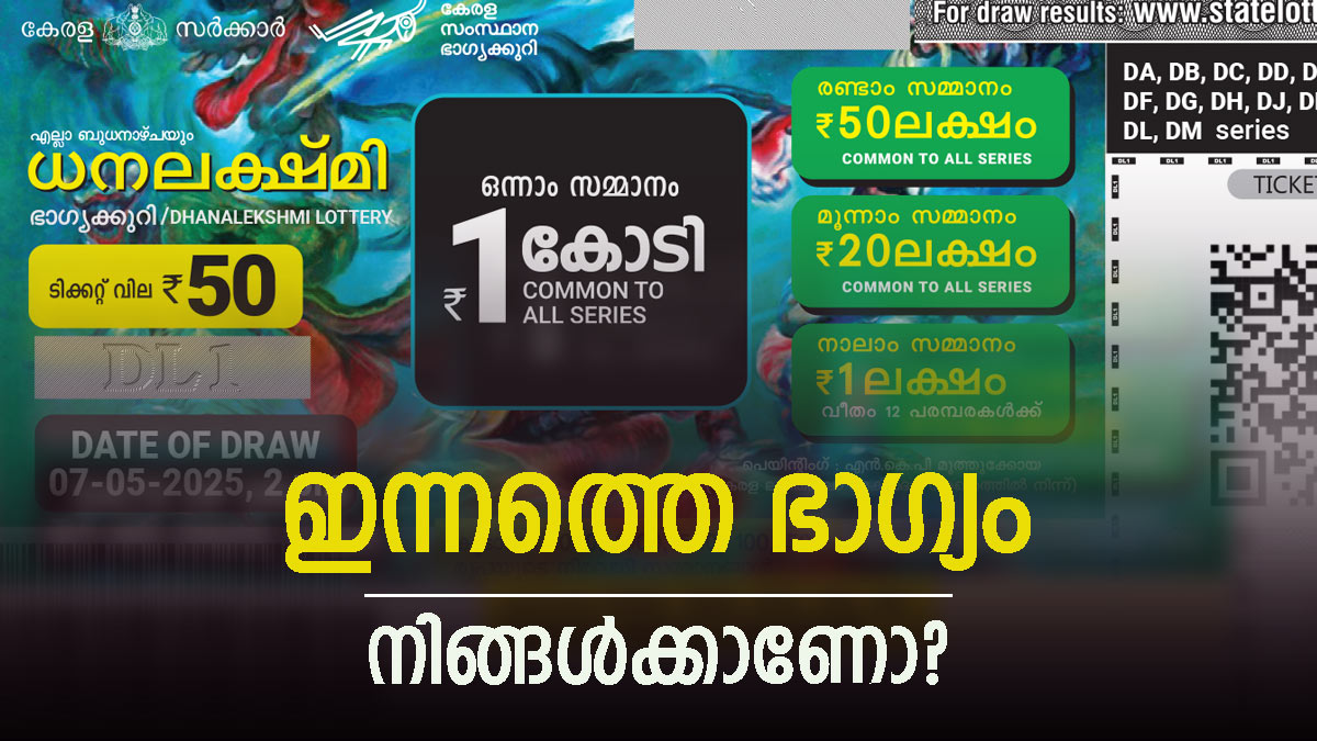 ബുധനാഴ്ചകളിൽ നറുക്കെടുക്കുന്ന കേരള സംസ്ഥാന ഭാഗ്യക്കുറിയായ ധനലക്ഷ്മി ലോട്ടറിയുടെ നറുക്കെടുപ്പ് ഫലം എത്തി. ഇന്നത്തെ ധനലക്ഷ്മി DL-6 ലോട്ടറിയുടെ ഭാഗ്യശാലി നിങ്ങളാണോ? തിരുവനന്തപുരം ബേക്കറി ജംങ്ഷന് സമീപമുള്ള ഗോർക്കി ഭവനിൽ വെച്ചാണ് ഇന്നത്തെ ഭാഗ്യ നമ്പറുകൾ കണ്ടെത്തിയത്. 50 രൂപാ ടിക്കറ്റ് വിലയുള്ള ധനലക്ഷ്മി ലോട്ടറിയുടെ ഒന്നാം സമ്മാനം 1 കോടിയാണ്. രണ്ടാം സമ്മാനം 30 ലക്ഷവും മൂന്നാം സമ്മാനം 5 ലക്ഷം രൂപയുമാണ്. നറുക്കെടുപ്പ് ഫലം ഇവിടെയുണ്ട്....