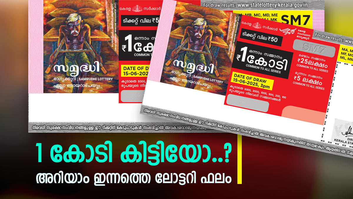 Samrudhi Lottery SM-35 Result 2025:കേരള സംസ്ഥാന ഭാഗ്യക്കുറി വകുപ്പിന്റെ സമൃദ്ധി ലോട്ടറി SM 35 ലോട്ടറിയാണ് ഇന്ന് നറുക്കെടുത്തത്. ഒരു കോടി രൂപയാണ് സമൃദ്ധി ലോട്ടറി ഒന്നാം സമ്മാനമായി നൽകുന്നത്. രണ്ടാം സമ്മാനമായി 25 ലക്ഷം രൂപയും മൂന്നാം സമ്മാനമായി 5 ലക്ഷം രൂപയും ലഭിക്കും. ഒന്നും രണ്ടും മൂന്നും സമ്മാനം ഒന്ന് വീതവും നാലാം സമ്മാനമായ ഒരു ലക്ഷം രൂപ 12 പേർക്കുമായും ലഭിക്കും. 50 രൂപയാണ് ടിക്കറ്റ് വില.