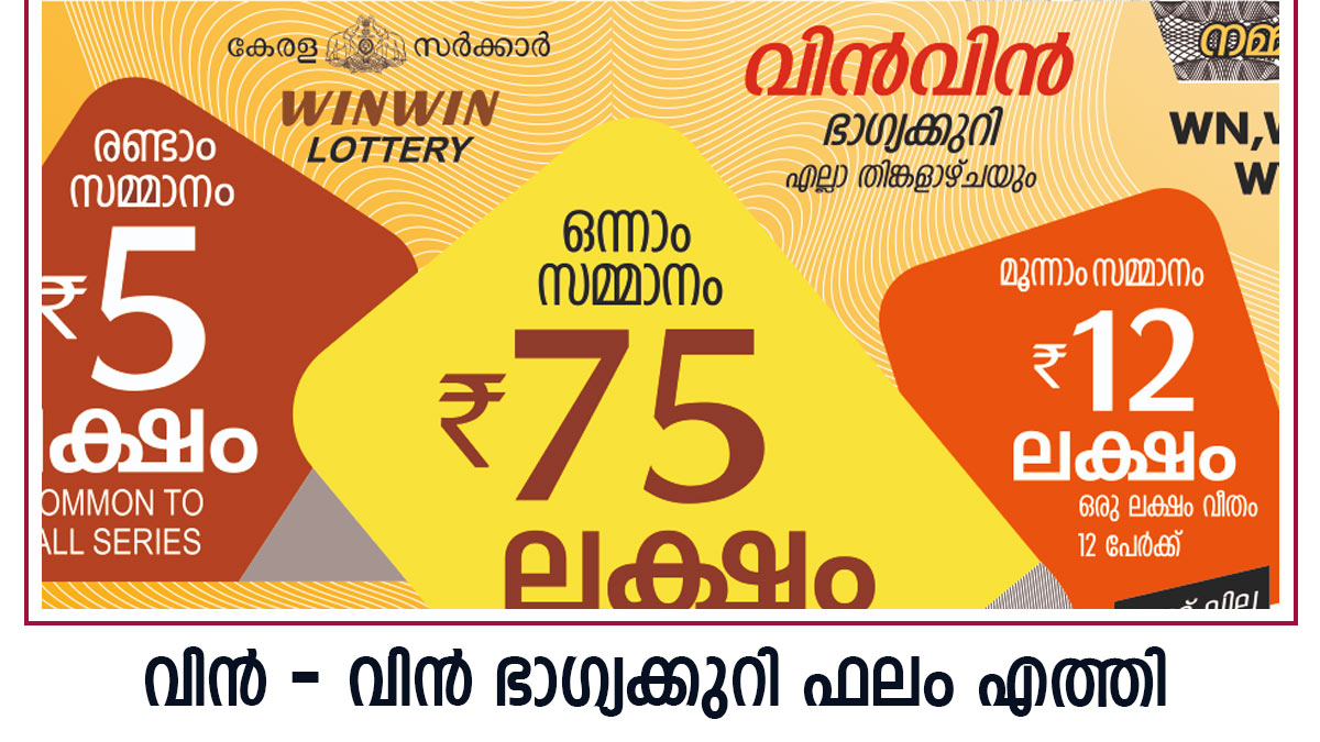 എല്ലാ തിങ്കളാഴ്ചയും നറുക്കെടുക്കുന്ന കേരള സംസ്ഥാന ഭാഗ്യക്കുറിയാണ് വിൻ- വിൻ. ഈ ആഴ്ചയിലെ വിൻ-വിൻ W-799 ഭാഗ്യക്കുറിയുടെ ഫലം പ്രഖ്യാപിച്ചു. തിരുവനന്തപുരം ബേക്കറി ജംങ്ഷന് സമീപമുള്ള ഗോർക്കി ഭവനിൽ വെച്ചാണ് റിസൾട്ട് പുറത്ത് വിട്ടത്. 40 രൂപ വിലയുള്ള വിൻ-വിൻ ഭാഗ്യക്കുറിയുടെ ഒന്നാം സമ്മാനം 75 ലക്ഷം രൂപയാണ്.