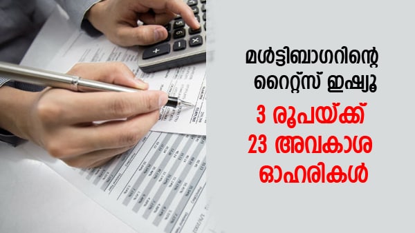 - റൈറ്റ്സ് എന്റ്റൈറ്റില്മെന്റ് റേഷ്യോ: കൈവശമുള്ള ഓഹരിയൊന്നിന് അധികമായി 23 ഓഹരികള് അവകാശമായി ലഭിക്കും.