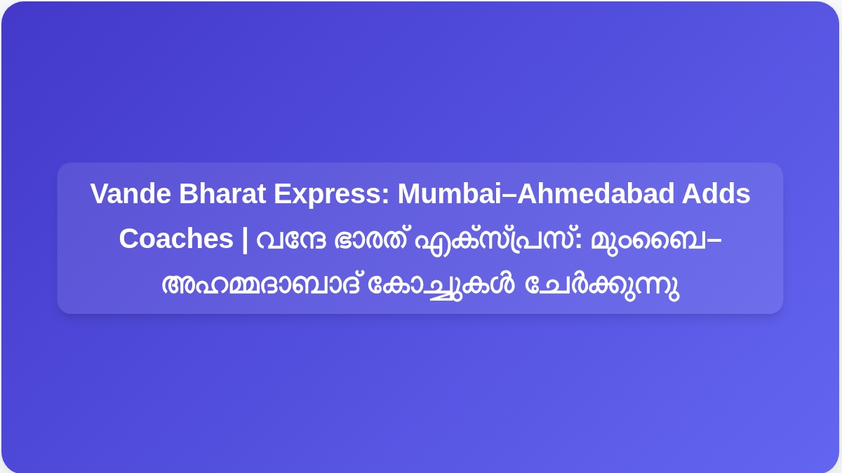 ഉയർന്ന ഡിമാൻഡുള്ള മുംബൈ–അഹമ്മദാബാദ് വന്ദേ ഭാരത് എക്സ്പ്രസ് ഇപ്പോൾ 20 കോച്ചുകളോടെയാണ് ഓടുന്നത്, ഇത് പശ്ചിമ ഇന്ത്യയിലെ ഏറ്റവും തിരക്കേറിയ ഒരു നഗരാന്തര റൂട്ടിൽ ബിസിനസ്, വിനോദ സഞ്ചാരികൾക്ക് കൂടുതൽ സീറ്റുകൾ നൽകുന്നു. മഹാരാഷ്ട്രയ്ക്കും ഗുജറാത്തിനും ഇടയിലുള്ള നിലവിലെ തിരക്കേറിയ യാത്രാ കാലയളവിൽ വലിയ വെയിറ്റ്ലിസ്റ്റുകളും തിരക്കും കുറയ്ക്കുക എന്ന ലക്ഷ്യത്തോടെ വെസ്റ്റേൺ റെയിൽവേ ഈ പ്രീമിയം സർവീസ് താൽക്കാലികമായി വർദ്ധിപ്പിച്ചിട്ടുണ്ട്.
