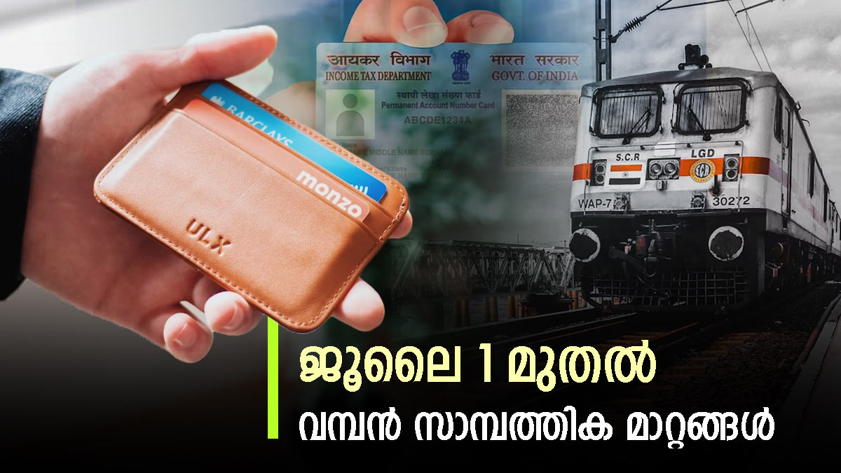 ഇന്ന് ജൂലൈ 1 മുതൽ രാജ്യത്ത് വിവിധ സാമ്പത്തിക നിയമങ്ങൾ മാറുന്നു. പുതിയ പാൻ കാർഡിന് അപേക്ഷിക്കുന്നതു മുതൽ ട്രെയിൻ ടിക്കറ്റ് ബുക്ക് ചെയ്യുന്നതും ക്രെഡിറ്റ് കാർഡ് ഉപയോഗിക്കുന്നതുമെല്ലാം ഈ മാറ്റത്തിൽ ഉൾപ്പെടുന്ന കാര്യങ്ങളാണ്. ഇവയിൽ പലതും ദൈനംദിന ജീവിതത്തിൽ പ്രയോഗിക്കുന്നവയാണ്. ഇന്ത്യയിലുടനീളമുള്ള നികുതിദായകരെയും, ബാങ്ക് ഉപഭോക്താക്കളെയും, റെയിൽവേ യാത്രക്കാരെയും ബാധിക്കുന്ന പ്രധാന മാറ്റങ്ങളെ കുറിച്ച് വിശദമായി അറിയാം;