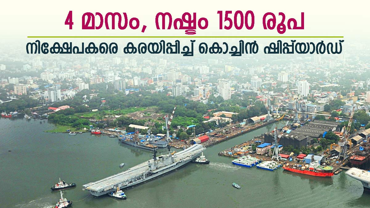 ഓഹരി വിപണിയിലെ ഓളങ്ങളെ മുഴുവൻ വകഞ്ഞ് മാറ്റി നങ്കൂരമിടാതെ കുതിച്ചു പായുകയായിരുന്നു പൊതുമേഖലാ ഓഹരിയായ കൊച്ചിൻ ഷിപ്പ്യാർഡ്. ആ കുതിപ്പിൽ നിക്ഷേപകരുടെ കീശ വീർത്തു കൊണ്ടേയിരുന്നു. ജൂലൈ എട്ടിന് കമ്പനിയുടെ ഓഹരിവില സർവകാല റെക്കോർഡായ 2,979.45 രൂപയിലുമെത്തി. എന്നാൽ പിന്നീട് ഓഹരി വില പതിയെ താഴേക്ക് വീഴാൻ തുടങ്ങി. തകർച്ചയിൽ നിന്നും തകർച്ചയിലേക്ക് വീണ കൊച്ചിൻ ഷിപ്പ്യാർഡിന് പിന്നെ മുകളിലേക്ക് ഉയരാനും സാധിച്ചില്ല. 4 മാസം പിന്നിടുമ്പോൾ എൻഎസ്ഇയിൽ 1,418.50 രൂപ എന്നതാണ് പൊതുമേഖലാ ഓഹരിയുടെ വില.