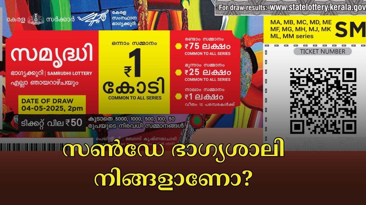 സൺഡേ ഹോളിഡേ ആണെങ്കിലും ലക്കിഡേ ആയിരിക്കാൻ സാധ്യത കൂടുതലാണ്. ഇന്നാണ് സമൃദ്ധി SM-18 ലോട്ടറിയുടെ നറുക്കെടുപ്പ്. തിരുവനന്തപുരം ബേക്കറി ജംങ്ഷന് സമീപമുള്ള ഗോർക്കി ഭവനിൽ വെച്ചാണ് ഇന്നത്തെ സമൃദ്ധി ലോട്ടറിയുടെ റിസൾട്ട് പ്രഖ്യാപിച്ചത്. 50 രൂപ ടിക്കറ്റ് വിലയുള്ള സമൃദ്ധി ഭാഗ്യക്കുറിയുടെ ഒന്നാം സമ്മാനം 1 കോടി രൂപയാണ്. രണ്ടാം സമ്മാനം 25 ലക്ഷം രൂപയും മൂന്നാം സമ്മാനമായി ലഭിക്കുന്നത് 5 ലക്ഷം രൂപയുമാണ്. ഇന്നത്തെ ഭാഗ്യശാലി ആരാണെന്ന് അറിയാം. ഇതാ നറുക്കെടുപ്പ് ഫലം;