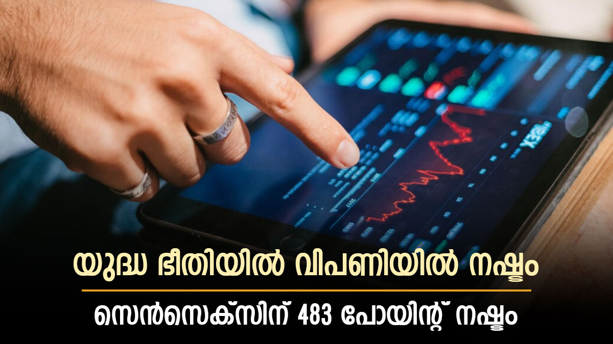 ഇസ്രായേൽ- ഹമാസ് യുദ്ധ സാഹചര്യം നിക്ഷേപകരെ ആശങ്കയിലായ്ത്തിയതിനാൽ തിങ്കളാഴ്ച ഇന്ത്യൻ ഇക്വിറ്റി സൂചികകൾ നഷ്ടത്തിൽ ക്ലോസ് ചെയ്തു. സെൻസെക്സ് 483 പോയിന്റ് ഇടിഞ്ഞ് 65,512.39 ലും നിഫ്റ്റി 141 പോയിന്റ് നഷ്ടത്തിൽ 19,512.35 ലുമാണ് ക്ലോസ് ചെയ്തത്. തിങ്കളാഴ്ച നഷ്ടത്തോടെയാണ് നിഫ്റ്റി ക്ലോസ് ചെയ്തത്.