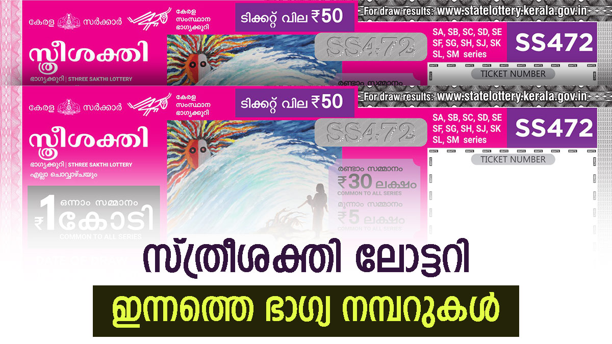 നിങ്ങൾക്ക് 5000 രൂപയിൽ താഴെയുള്ള ടിക്കറ്റുകൾ ലഭിച്ചാൽ സംസ്ഥാനത്തെ ഏത് ലോട്ടറി വിൽപ്പനക്കാരിൽ നിന്നും ആ പണം ലഭിക്കും. 10,000 രൂപയിൽ കൂടുതലുള്ള സമ്മാന തുക ലഭിച്ചാൽ നിങ്ങളുടെ തിരിച്ചറിയൽ രേഖയും ടിക്കറ്റും ബാങ്കിലോ ലോട്ടറി ഓഫീസിലോ സമർപ്പിച്ച് പണം ഉറപ്പാക്കാം. നറുക്കെടുപ്പ് ഫലം കേരള ഭാഗ്യക്കുറി വകുപ്പിൻ്റെ ഔദ്യോഗിക വെബ്സൈറ്റായ www.keralalottery.info വഴിയാണ് പുറത്ത് വിടുന്നത്. SN, SO, SP, SR, SS, ST, SU, SV, SW, SX, SY, SZ എന്നീ സീരീസിലുള്ള സ്ത്രീ ശക്തി ടിക്കറ്റുകളാണ് നിലവിൽ വിപണിയിൽ ഉള്ളത്. ഇന്നത്തെ ഭാഗ്യ നമ്പർ ഏതായിരിക്കും?