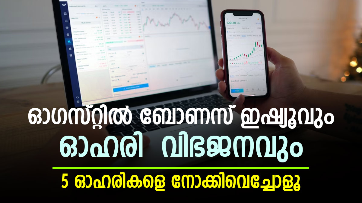 നിക്ഷേപകരെ ഓഹരിയിലേക്ക് ആകര്ഷിക്കാനായി കമ്പനികള് ലാഭവിഹിതങ്ങള് നല്കാറുണ്ട്. ലാഭവിഹിതത്തോടൊപ്പം പ്രധാനപ്പെട്ടൊരു പാരിതോഷികമാണ് ബോണസ് ഓഹരിയും ഓഹരി വിഭജനവും. നിക്ഷേപകര്ക്ക് ഓഹരിയിലുള്ള വിശ്വാസ്യത വര്ധിപ്പിക്കുന്നതിനൊപ്പം ഇടപാട് കൂടുതല് സൗകര്യപ്രദമാക്കാന് ബോണസ് ഇഷ്യൂ, ഓഹരി വിഭജനം എന്നിവ വഴി സാധിക്കും. ഓഗസ്റ്റ് മാസത്തില് ബോണസ് ഇഷ്യു, ഓഹരി വിഭജനം എന്നിവ പ്രഖ്യാപിച്ച 5 പ്രധാന ഓഹരികളെ പരിചയപ്പെടാം.