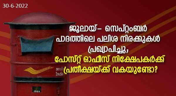 നിക്ഷേപങ്ങൾക്ക് പലിശ നിരക്ക് ഉയർന്നു കൊണ്ടിരിക്കുന്ന സാഹചര്യത്തിൽ പൊതുവിൽ എല്ലാവരും പ്രതീക്ഷിച്ചതാണ് ലഘുസമ്പാദ്യ പദ്ധതികളുടെ പലിശ നിരക്ക്. കഴിഞ്ഞ മാസങ്ങളിലായി ബാങ്കുകൾ പലിശ നിരക്ക് ഉയർത്തിയ സാഹചര്യത്തിൽ മാറ്റം പോസ്റ്റ് ഓഫീസ് നിക്ഷേപങ്ങൾക്കും പ്രതീക്ഷിച്ചതാണ്. വ്യാഴാഴ്ച ലഘു സമ്പാദ്യ പദ്ധതികളുടെ ജൂലായ്- സെപ്റ്റംബര് പാദത്തിലെ പലിശ നിരക്കുകള് കേന്ദ്ര സര്ക്കാര് പ്രഖ്യാപിച്ചെങ്കിലും നിരാശയാണ് നിക്ഷേപകർക്ക് ഫലം. പബ്ലിക്ക് പ്രൊവിഡന്റ് ഫണ്ട്, സുകന്യ സമൃദ്ധി യോജന, സീനിയര് സിറ്റിസണ് സേവിംഗ്സ് സകീം അടക്കമുള്ള നിക്ഷേപങ്ങലുടെ പലിശ നിരക്കകുകള് മാറ്റമില്ലാതെ തുടരും. തുടര്ച്ചയായ ഒന്പതാം തവണയാണ് പലിശ നിരക്കില് മാറ്റമില്ലാതെ തുടരുന്നത്.
