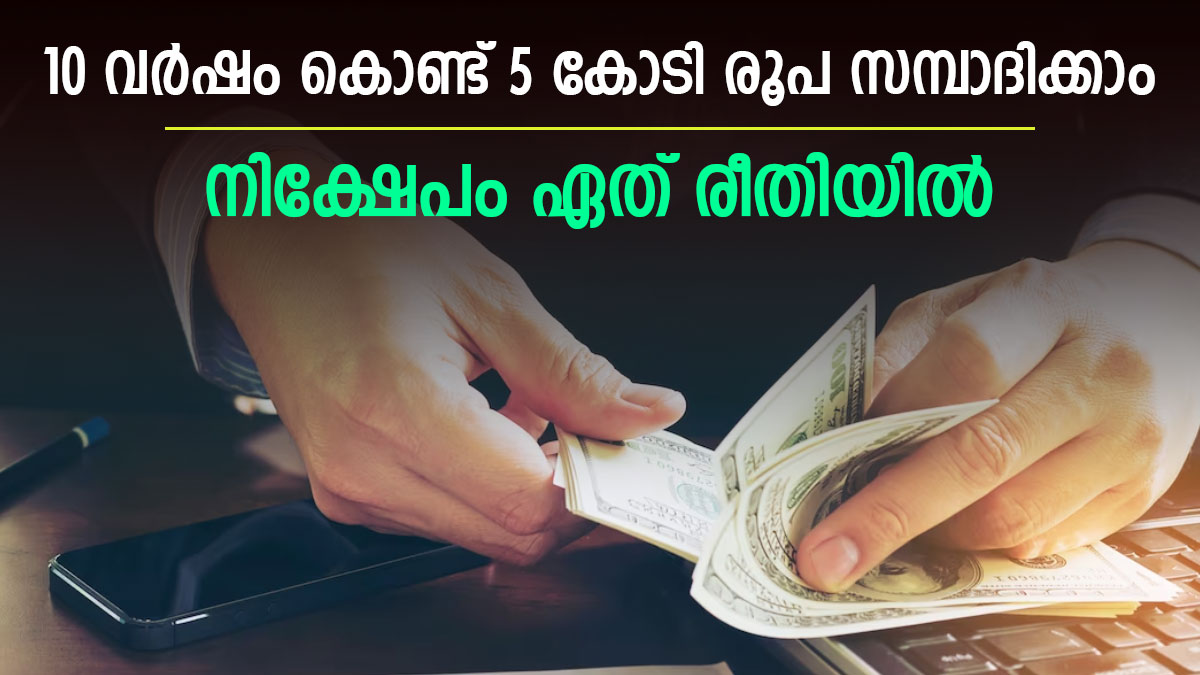 പെട്ടന്ന് പണക്കാരനാവാൻ എളുപ്പ വഴിയുണ്ടോ? പലരുടെയും വാക്കു കേട്ട് എളുപ്പ വഴി തേടിപ്പോയവരാണ് ഇന്ന് വിവിധ മണിചെയിനുകളിൽ കുടുങ്ങി പണം നഷ്ടപ്പെടുത്തിയത്. പണക്കാരനാകാൻ എളുപ്പവഴികളൊന്നുമില്ല, നിക്ഷേപം തന്നെയാണ് വഴി. അധികം റിസ്കില്ലാതെ നിക്ഷേപിക്കാനുള്ള മാർഗമാണ് മ്യൂച്വൽ ഫണ്ടുകൾ. ഇക്വിറ്റി മ്യൂച്വൽ ഫണ്ടുകളിലെ ദീർഘകാല നിക്ഷേപം വലിയ ലക്ഷ്യങ്ങൾ പിന്തുടരുന്നവർക്ക് സഹായകമാകും. 10 വർഷം കൊണ്ട് 5 കോടി എന്ന ലക്ഷ്യത്തിലേക്ക് മുന്നേറുന്നൊരാൾക്ക് മ്യൂച്വൽ ഫണ്ടിൽ എന്തൊക്കെ സാധ്യതകൾ മുന്നിലുണ്ടെന്ന് നോക്കാം.