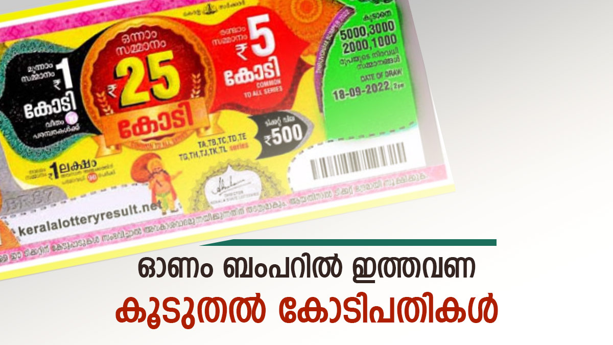 ആഗസ്റ്റ് പിറക്കുന്നതോടെ ഓണത്തിന്റെ തിരക്കുകളിലേക്ക് കടക്കും. എന്നാൽ അതിന് മുൻപ് തന്നെ കേരളത്തിൽ ഓണം ബംപറിന്റെ തിരക്കുകൾ തുടങ്ങി. ഇത്തവണ സമ്മാന നിരക്കുകളിലും ടിക്കറ്റ് നിരക്കിലും വ്യത്യാസമൊന്നും ലോട്ടറി വകുപ്പ് വരുത്തിയിട്ടില്ല. ഒന്നാം സമ്മാനം 30 കോടി രൂപയായി ഉയർത്തണമെന്ന ലോട്ടറി വകുപ്പിന്റെ നിർദ്ദേശം ധനവകുപ്പ് തള്ളുകയാണുണ്ടായത്. എന്നാൽ സമ്മാന ഘടനയിൽ മാറ്റം വരുത്തിയതോടെ കൂടുതൽ കോടിപതികൾ ഇത്തവണയുണ്ടാകും.
