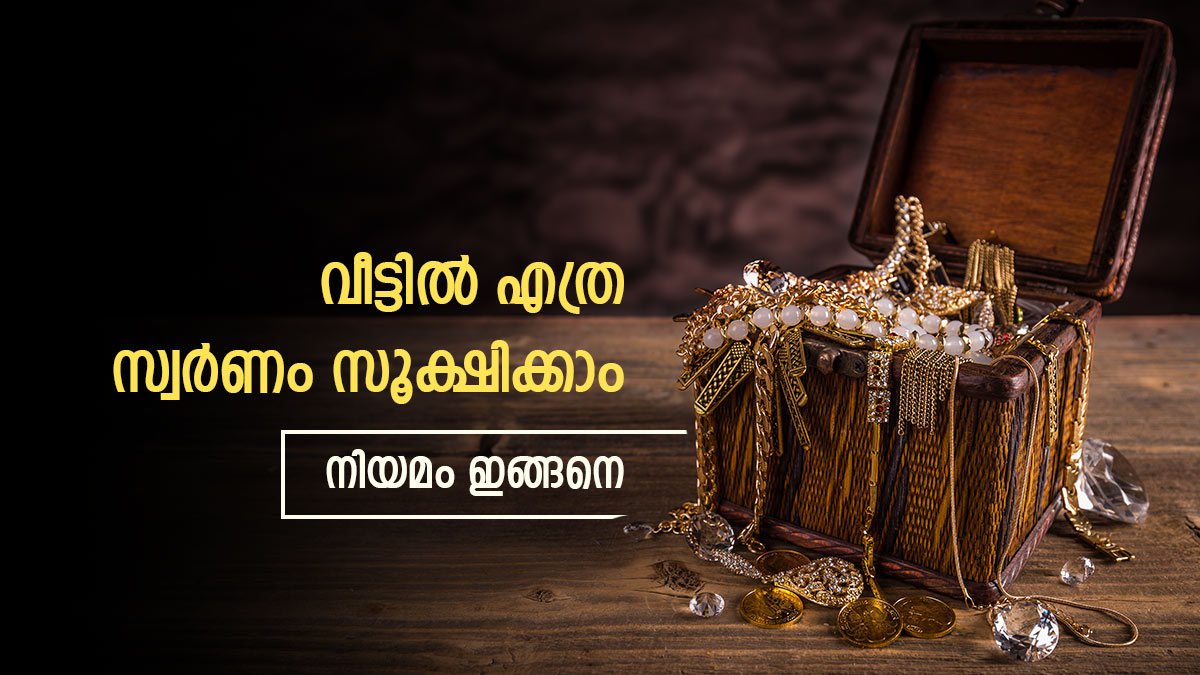 ഇന്ത്യാ ഗവൺമെൻ്റിൻ്റെ ആദായനികുതി ചട്ടങ്ങൾ പ്രകാരം, സ്വർണ്ണം വീട്ടിൽ സൂക്ഷിക്കുന്നതിന് ഒരു പരിധി നിശ്ചയിച്ചിട്ടുണ്ട്. എന്നാൽ ഈ പരിധി സ്ത്രീകൾക്കും പുരുഷന്മാർക്കും വ്യത്യസ്തമാണ്. മാത്രമല്ല, സെൻട്രൽ ബോർഡ് ഓഫ് ഡയറക്ട് ടാക്സസ് നിയമങ്ങൾ അനുസരിച്ച് ഒരു വ്യക്തിയുടെ കൈവശം എത്ര സ്വർണം ഉണ്ടെങ്കിലും അത് എങ്ങനെ ലഭിച്ചു എന്നതിൻ്റെ തെളിവ് കൂടി അയാളുടെ പക്കലുണ്ടാകണം.