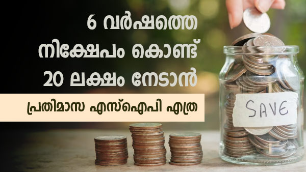 പ്രതിമാസം 10,000 രൂപയുടെ എസ്ഐപി ചെയ്യുന്നൊരാള്ക്ക് 12 ശതമാനം വാര്ഷിക റിട്ടേണ് ലഭിച്ചാല് 9 വര്ഷവും 2 മാസവും കൊണ്ട് 20 ലക്ഷം നേടാന് സാധിക്കും. 20,000 രൂപയുടെ എസ്ഐപിയാണെങ്കില് 5 വര്ഷം 10 മാസം കൊണ്ട് 20 ലക്ഷം രൂപ നേടാന് സാധിക്കും.