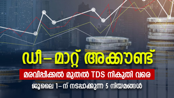 നടപ്പ് സാമ്പത്തിക വര്ഷത്തിന്റെ (2022- 23) രണ്ടാം പാദം നാളെ ആരംഭിക്കുകയാണ്. നിത്യജീവിതത്തിലെ സാമ്പത്തിക വിഷയങ്ങളുമായി ബന്ധപ്പെട്ട ചില നിയമങ്ങളില് നേരത്തെ പ്രഖ്യാപിക്കപ്പെട്ട മാറ്റങ്ങളും ജൂലൈ 1 മുതല് പ്രാബല്യത്തില് വരും. ഡീമാറ്റ് അക്കൗണ്ട് മരവിപ്പിക്കപ്പെടുന്നത് മുതല് ഡിജിറ്റല് ആസ്തികള്ക്കു പുതിയ നികുതി ചുമത്തപ്പെടുന്നത് ഉള്പ്പെടെ ഏവരേയും ബാധിക്കാവുന്ന പ്രധാന 5 മാറ്റങ്ങള് ചുവടെ ചേര്ക്കുന്നു.